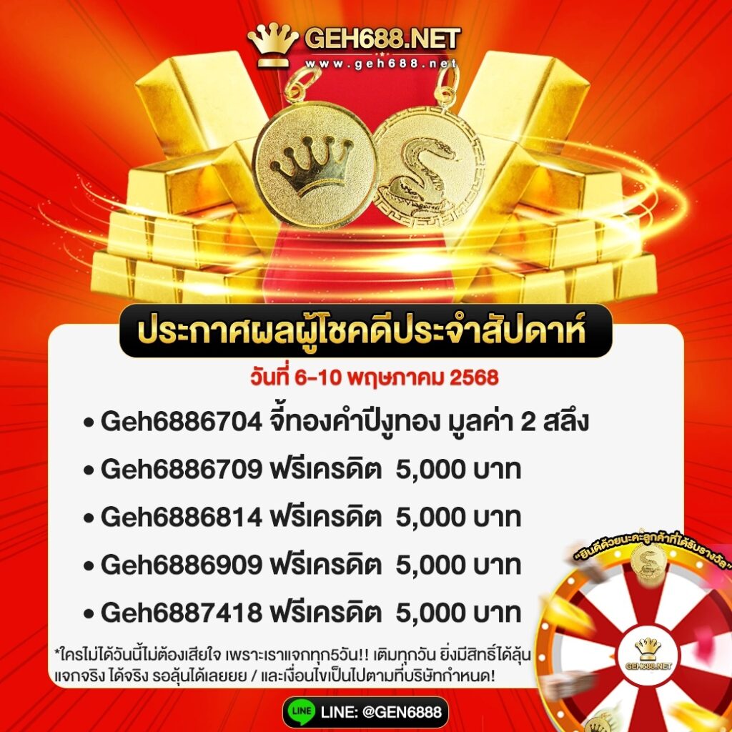 ประกาศผลรางวัล วันที่ 10 พฤษภาคม 2568